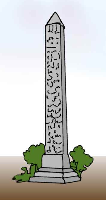 ಚೌಕ ಸೂಜಿ(ಯಂಥ) ಕಂಬ; ಸ್ಮಾರಕವಾಗಿ ಯಾ ಯುಗ ಪ್ರವರ್ತಕ ಘಟನೆ ಮೊದಲಾದವುಗಳ ನೆನೆಪಿಗಾಗಿ ಸ್ಥಾಪಿಸುವ, ಸಾಮಾನ್ಯವಾಗಿ ಕಂಬದ ಕಾಂಡವು ಚೌಕಾಕಾರವಾಗಿ ಯಾ ಆಯತಾಕಾರವಾಗಿ ಯಾ ಚತುರಸ್ರವಾಗಿ ಇದ್ದು, ತುದಿಗೆ ಹೋಗುತ್ತ ಮೊನೆಯಾಗುವ ಪಿರಮಿಡ್ ಆಕೃತಿಯ ತುದಿಯುಳ್ಳ, ಸಾಮಾನ್ಯವಾಗಿ ಒಂದೇ ಕಲ್ಲಿನ, ನಿಲುಗಂಬ.